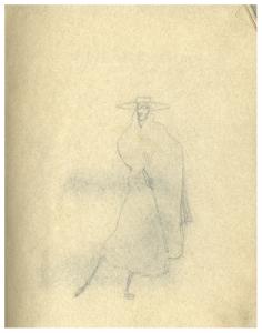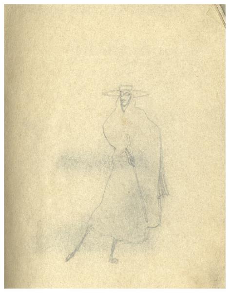 - NOTIZIE STORICO CRITICHE L'album nel quale è contenuto questo disegno è riconducibile, con poche eccezioni, al progetto per l'illustrazione, in xilografia, della Giornata IX del Decamerone di Boccaccio per l'edizione Formiggini del 1916 (collana "I Classici del Ridere"). La sua datazione è riferibile pertanto al 1913-14, quando Disertori avrebbe iniziato a studiare per queste incisioni. Alle carte 2 recto e 2 verso è vergata una lunga annotazione autobiografica dell'artista (forse successiva ai disegni), che ricorda le difficoltà economiche conosciute "in questi anni dal 1914 in poi".