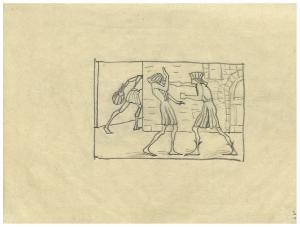 Disegno preparatorio per illustrazione silografica del Decamerone, Giornata IX-Emilia: novella ottava