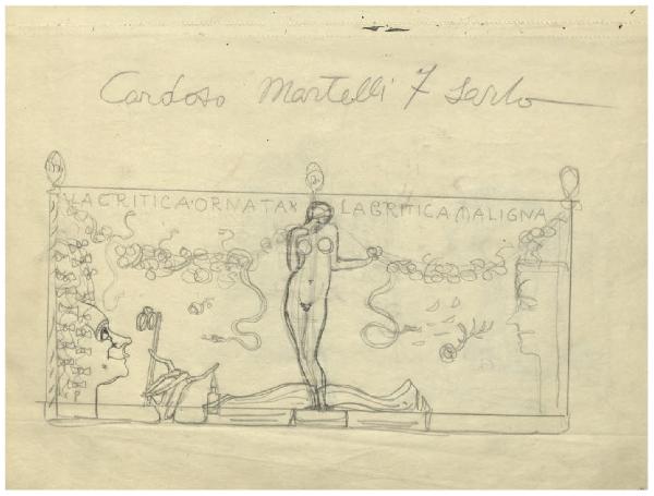 - NOTIZIE STORICO CRITICHE L'album del quale fa parte il disegno qui schedato può datarsi alla prima metà degli anni Dieci, dopo il rientro in Italia nel 1911, quando Disertori intraprende una serie di viaggi e conosce le città medioevali del centro Italia. Vi si riconoscono infatti vedute di San Gimignano e Perugia. Sono inoltre presenti disegni destinati a progetti editoriali come il Decameron per le edizioni Formiggini (edito nel 1916, ma in preparazione dal 1913-14), la Leggenda di San Basilio di Ildebrando Pizzetti (1912), e Frammenti vissuti di Torello Fanciullacci per la Tipografia emiliana a Venezia (1913).