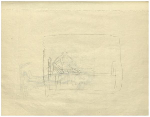 - NOTIZIE STORICO CRITICHE L'album del quale fa parte il disegno qui schedato può datarsi alla prima metà degli anni Dieci, dopo il rientro in Italia nel 1911, quando Disertori intraprende una serie di viaggi e conosce le città medioevali del centro Italia. Vi si riconoscono infatti vedute di San Gimignano e Perugia. Sono inoltre presenti disegni destinati a progetti editoriali come il Decameron per le edizioni Formiggini (edito nel 1916, ma in preparazione dal 1913-14), la Leggenda di San Basilio di Ildebrando Pizzetti (1912), e Frammenti vissuti di Torello Fanciullacci per la Tipografia emiliana a Venezia (1913).