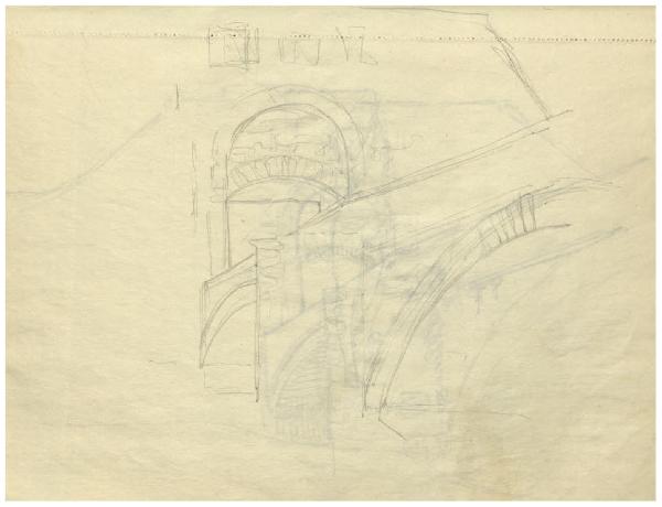 - NOTIZIE STORICO CRITICHE L'album del quale fa parte il disegno qui schedato può datarsi alla prima metà degli anni Dieci, dopo il rientro in Italia nel 1911, quando Disertori intraprende una serie di viaggi e conosce le città medioevali del centro Italia. Vi si riconoscono infatti vedute di San Gimignano e Perugia. Sono inoltre presenti disegni destinati a progetti editoriali come il Decameron per le edizioni Formiggini (edito nel 1916, ma in preparazione dal 1913-14), la Leggenda di San Basilio di Ildebrando Pizzetti (1912), e Frammenti vissuti di Torello Fanciullacci per la Tipografia emiliana a Venezia (1913).