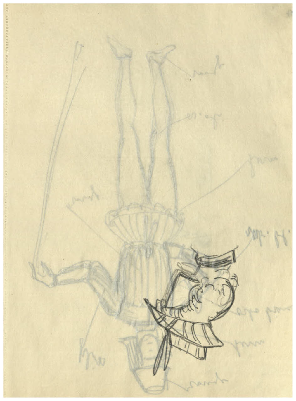 • NOTIZIE STORICO CRITICHE L'album del quale fa parte il disegno qui schedato può datarsi alla prima metà degli anni Dieci, dopo il rientro in Italia nel 1911, quando Disertori intraprende una serie di viaggi e conosce le città medioevali del centro Italia. Vi si riconoscono infatti vedute di San Gimignano e Perugia. Sono inoltre presenti disegni destinati a progetti editoriali come il Decameron per le edizioni Formiggini (edito nel 1916, ma in preparazione dal 1913-14), la Leggenda di San Basilio di Ildebrando Pizzetti (1912), e Frammenti vissuti di Torello Fanciullacci per la Tipografia emiliana a Venezia (1913).