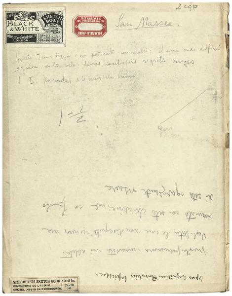 - NOTIZIE STORICO CRITICHE A differenza di altri taccuini dell'artista conservati presso il Fondo Disertori al Gabinetto dei Disegni del Castello, più coerenti per epoca di composizione, questo quaderno sembra aver accompagnato l'artista in diversi viaggi: è forse in tale prospettiva che deve leggersi una nota manoscritta presente sulla carta 39 "[...]/ 15 Venezia/ 14 Monaco/ 13 Firenze/ 12 Venezia/ 11 Gubbio".