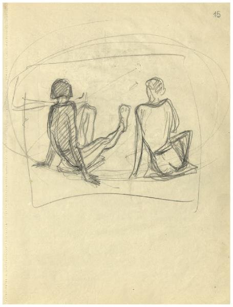 Due figure sedute a terra, di spalle