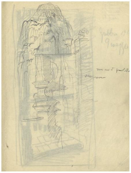 - NOTIZIE STORICO CRITICHE A differenza di altri taccuini dell'artista conservati presso il Fondo Disertori al Gabinetto dei Disegni del Castello, più coerenti per epoca di composizione, questo quaderno sembra aver accompagnato l'artista in diversi viaggi: è forse in tale prospettiva che deve leggersi una nota manoscritta presente sulla carta 39 "[...]/ 15 Venezia/ 14 Monaco/ 13 Firenze/ 12 Venezia/ 11 Gubbio".