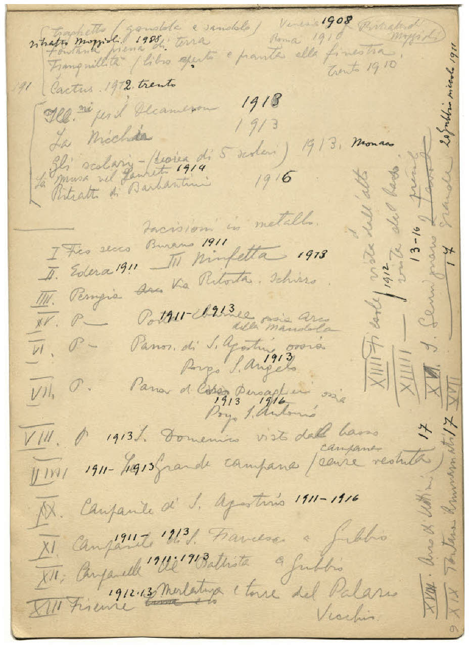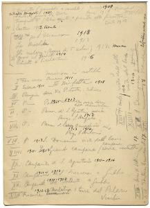 Nota manoscritta dell'artista contenente una lista delle sue incisioni fino al 1917