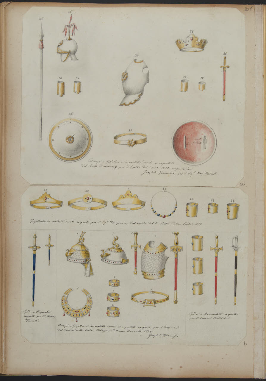 Costumi di scena: attrezzi, gioiellerie, armature (realizzati per l' Impresa il Teatro della Scala, Chiappa Cattaneo Brunello 1872)