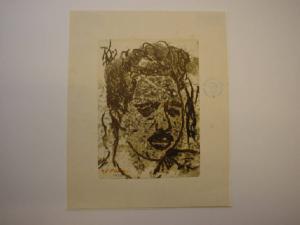 Con tratti decisi e marcati - tipici peraltro della tecnica del monotipo - è raffigurato il volto del giovane artista in posizione quasi frontale. Il monotipo, a tratti scuri si fondo avorio, è monocromo.