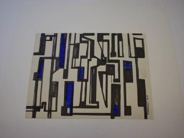 L'intero piano rettangolare è riempito con moduli rettangolari allungati di diversa dimensione, collegati fra loro da linee continue rette ad andamento orizzontale e verticale alternato. Alcuni di questi moduli risultano campiti in "blu Parisi".