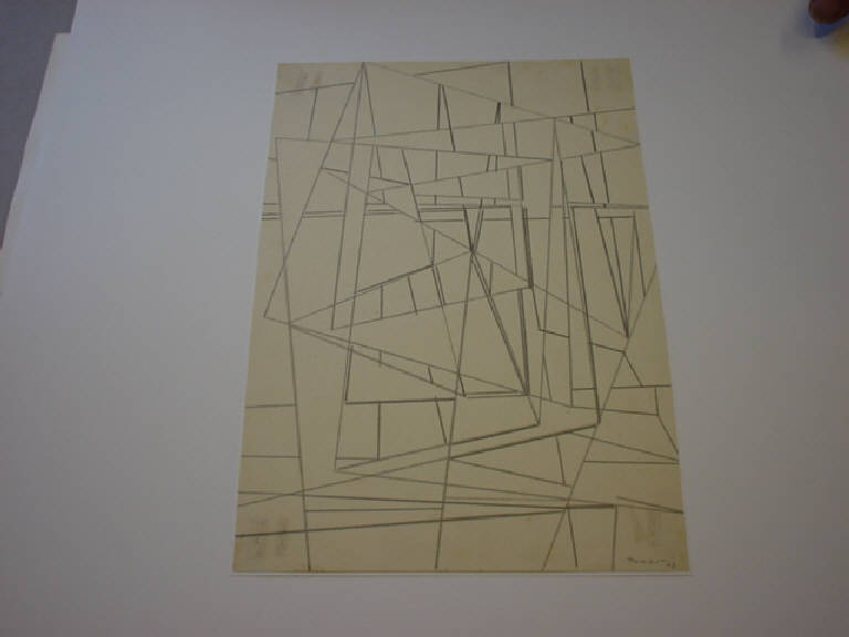 Sul piano dell'opera si dispongono moduli di varia forma geometrica (in prevalenza triangolari) che si intersecano fra di loro.