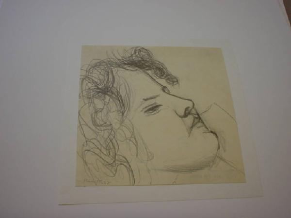 Raffigura un volto di donna, di profilo, in atteggiamento di abbandono. Poche linee, rapide ed essenziali, sintetizzano l'immagine.