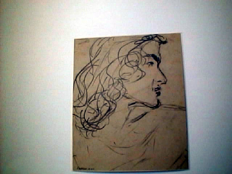 Profilo di giovane donna. Pochi tratti decisi e nervosi rendono a perfezione l¿intensa espressione del volto.