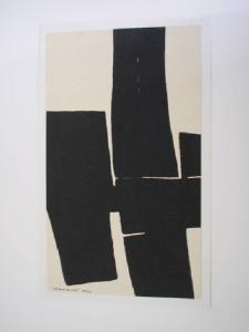 Protagoniste del disegno sono campiture verticali nere, interrotte da brevi linee orizzontali.