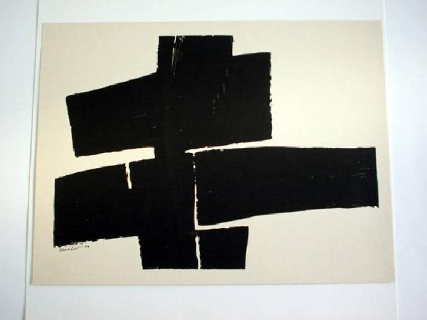 Due campiture larghe e nere ad andamento orizzontale lasciano intravedere il fondo avorio del foglio.