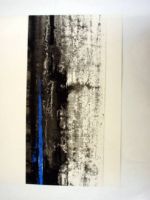 Con l'uso del pennello giapponese l'autore ha steso il colore nero in diversi gradi di diluizione, evidenziando la verticalità della composizione tracciando una campitura verticale azzurra