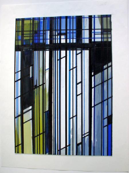 Griglia di linee verticali, orizzontali e oblique di diverso spessore di colore blu e verde.