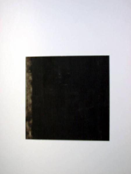 Il fondo è occupato quasi interamente da una campitura di nero assoluto; solo sulla destra l'autore occupa il fondo con una campitura di tempera nera più diluita