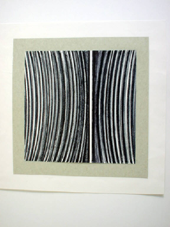 L¿opera è stata realizzata tracciando linee verticali, leggermente convesse e addensate in direzione della verticale bianca posta in dissimmetria dinamica. E¿ stato usato inchiostro nero in tratti molto sottili.