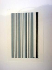 Il fondo è completamente occupato da righe parallele di vario spessore nei colori bianco, grigio e nero