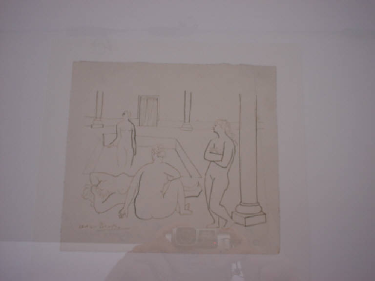 Sono linee nette e pulite quelle che definiscono i quattro nudi femminili che popolano il bagno turco. L'interno è caratterizzato dalla presenza di un ampio colonnato