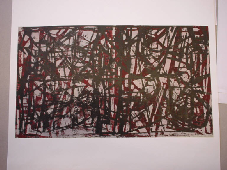 Il colore bordeaux nero e rosa formano una texture di segno espressionista