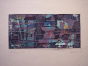 La combinazione di diverse zonature geometriche in prevalenza rettangolari, campite in diversi colori, dà origine ad una composizione astratta di raffinata cromia