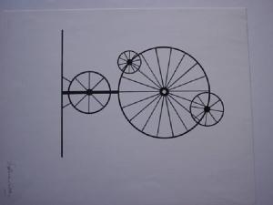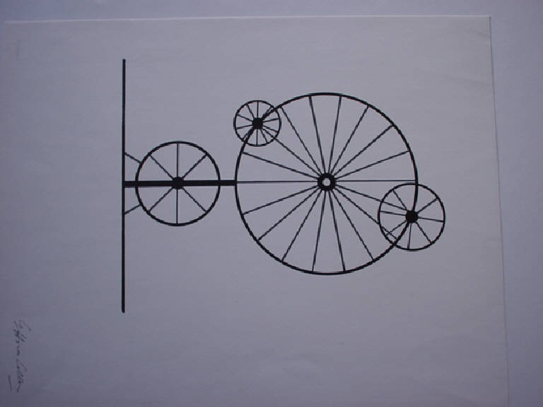 prova serigrafica di un lavoro realizzato nel 1948E' disegnata in rappresntazione frontale una struttura composta da quattro cerchi a raggiera sovrapposti.
