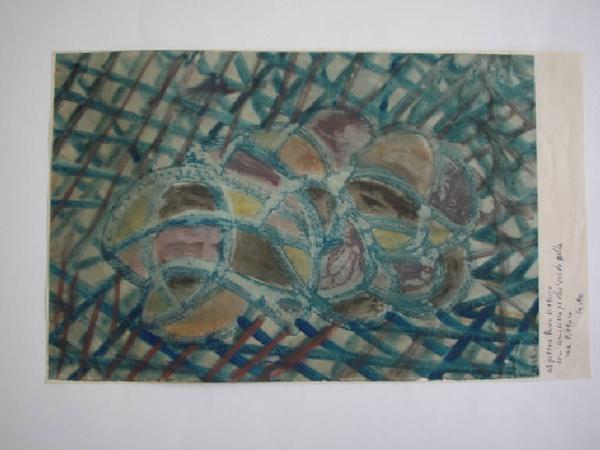 Appare come una natura morta ripresa dall'alto. Ad uno sguardo più attento si scopre come quelle maglie tondeggianti rievochino forme che non hanno nome. Sono usati i toni del pastello: verde, azzurro, rosa, giallo.