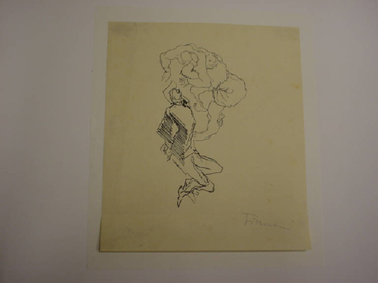 E' raffigurato un gruppo di figure umane allungate avviluppato in un vortice ascendente
