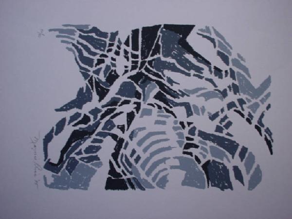 Composizione di segno astratto nei colori del grigio e dell'azzurro