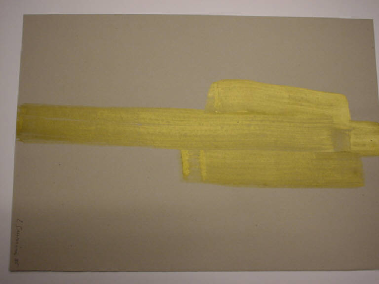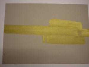 Ampie zonature di coloresteso a tempera formano una fascia monocromatica ocra