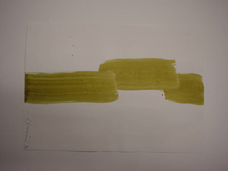 Ampie zonature di coloresteso a tempera formano una fascia monocromatica ocra