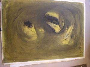 L'autrice sembra volere riproporre un motivo di Bice Lazzari. Molto simili e il trattamento dello sfondo, e la presenza misteriosa di due forme ovali, quasi tracce di una vita che muore e si rinnova in perpetuo.
