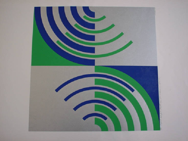 Composizione astratta bicromatica, basata sulla reiterazione di porzioni di circonferenza concentriche.