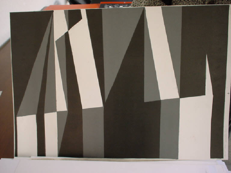 Composizione astratta basata sulla resa bidimensionale di volumetrie geometriche