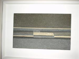 L'opera è basata sul contrasto tonale tra il silicato grigio di fondo e gli elementi verticali colore avorioo e nero.