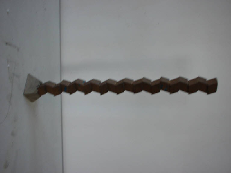 Su base trapezoidale si sviluppano 21 elementi romboidali in stretta successione