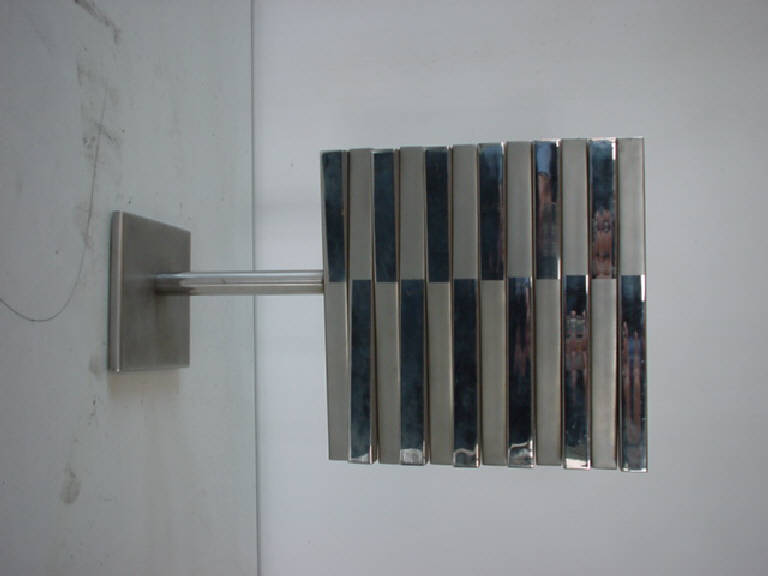 Due elementi costituiti da moduli a sezione quadrata assemblati a scansione alternata, sono incrociati in dissimmetria dinamica e collegati alla base da un modulo tubolare