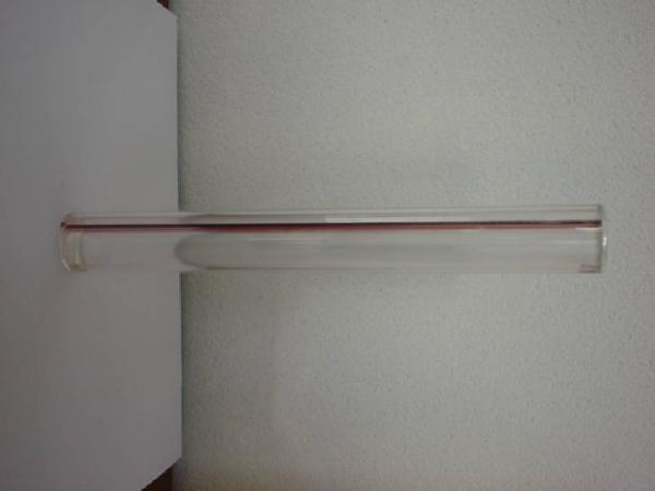 Assemblaggio poliplastico costituito da: un modulo tubolare cavo e trasparente che contiene al suo interno due elementi circolari trasparenti di diverse dimensioni, e da una lastra in polimetacrilato rosso che divide in due lo spazio interno del modulo