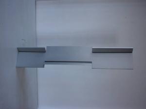 Tre elementi a forte sviluppo verticale ed a sagoma rettangolare sono tagliati ai lati in modo da permetterne l'incastro. Tale incastro è realizzato in modo che i tre elementi risultino in dissimmetria dinamica l'uno rispetto all'altro, lasciando al centro un vuoto triangolare,