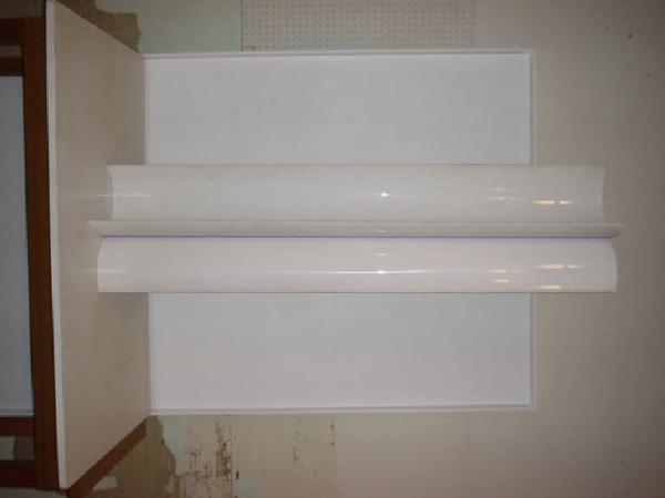 Due lastre convesse di polimetacrilato bianco sono contrapposte in posizione di dissimmetria dinamica