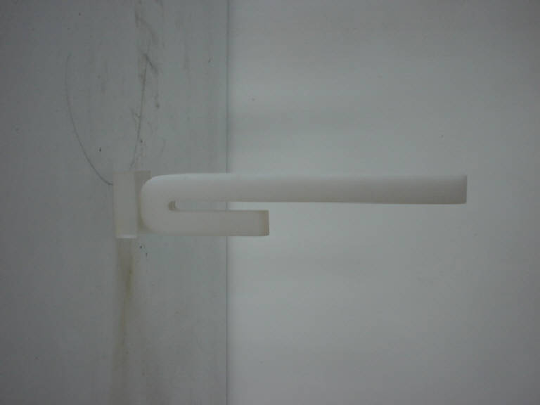 Scultura ad andamento paraboloide. Un braccio della ideale parabola è però di altezza inferiore rispetto all'altro. Il polimetacrilato è bianco opaco.