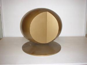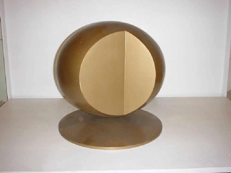 Su di una base circolare si innesta un modulo perfettamente sferico in totale monocromia color bronzo, che presenta tre incavi le cui facce in dissimmetria dinamica l'una rispetto all'altra