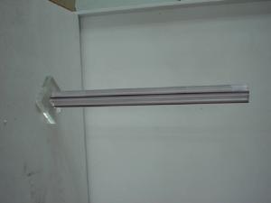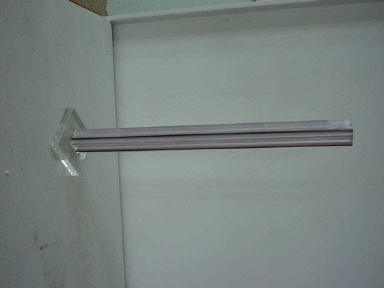 Su una base rettangolare è inscritto un modulo a sezione rettangoalre in polimetacrilato bianco che presenta sulle quattro facce una profonda scanalatura in dissimmetria dinamica verniciata di nero