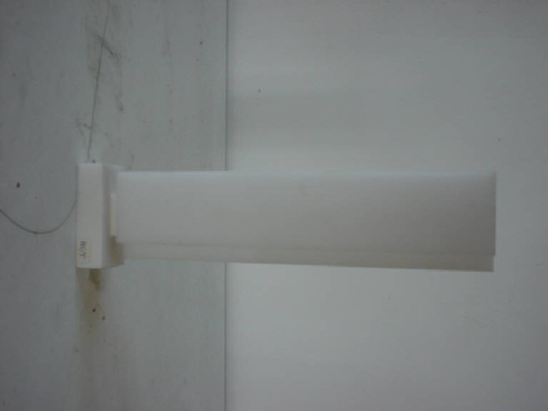 Su di una base in polimetacrilato bianco si innestano due lastre bianche speculari l'una all'altra ma in dissimmetria dinamica, saldate insieme mediante una terza lastra