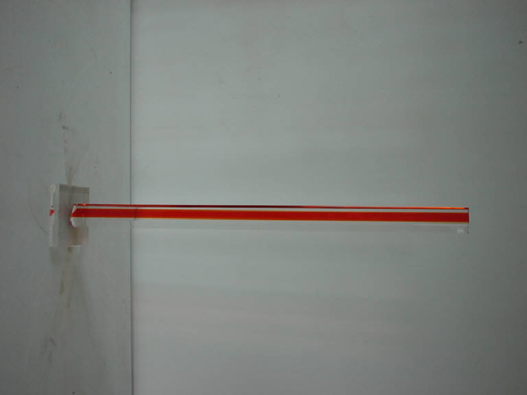 assemblato di diversi elementi a base quadrata di polimetacrilato rosso e bianco trasparente