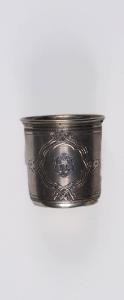 - NOTIZIE STORICO CRITICHE Come attestano i punzoni, il bicchiere è stato realizzato a San Pietroburgo nel 1860 dall' argentiere "F G", non identificato. Il punzone di saggio, impresso anche sul cucchiaio e sul coltello facenti parte del servizio, è di A. N. Mitin