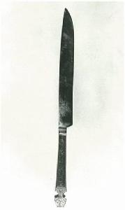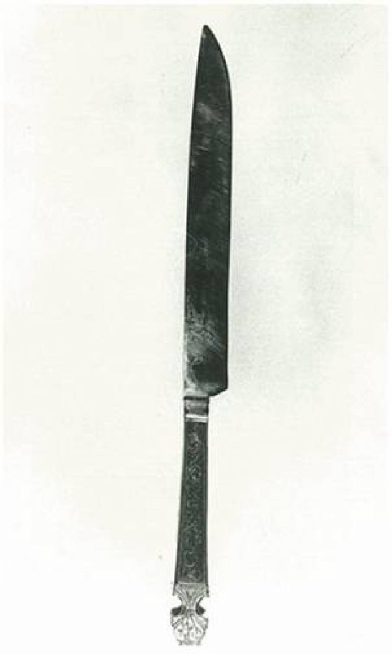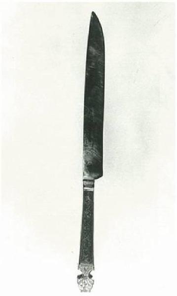 Coltello da tavola, simile al precedente, sulle facce decorazioni floreali.