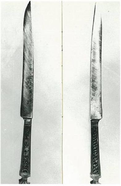 Coltello da tavola, simile al precedente. Sulle facce, scritta amorosa fra decorazioni geometriche e girali vegetali.