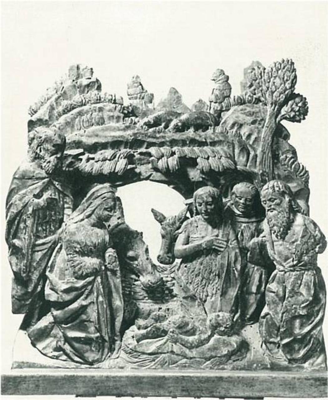 - NOTIZIE STORICO CRITICHE La provenienza del rilievo è ignota. La composizione deriva dal Presepe di Trognano (inv. Sculture Lignee n. 272) con una piccola variazione che sostituisce ai pastori i Santi Giovanni Battista, Domenico e Gerolamo.